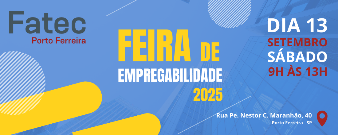 Prepare-se para uma experiência inédito na Feira de Empregabilidade da FATEC Porto Ferreira! No dia 13 de setembro, das 9h às 13h, você terá a chance de se conectar diretamente com diversas empresas de sucesso. Descubra oportunidades de emprego e estágio, entregue seu currículo e converse com recrutadores sobre seu futuro profissional. É o momento perfeito para conhecer as tendências do mercado, ampliar seu networking e dar um grande passo na sua carreira. Esperamos por você!